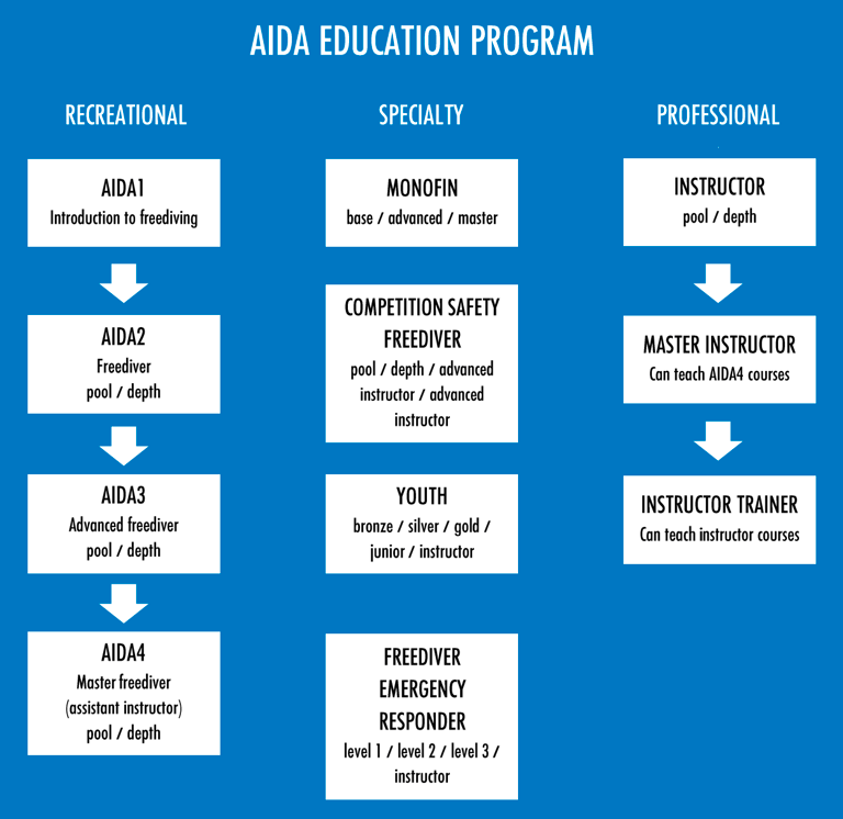 The AIDA (International Association for the Development of Apnea) system is the world’s leading standard for freediving education, safety, and certification.